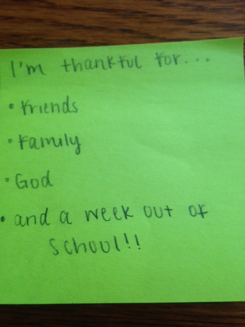 I asked my students on their way out of class last week to take a moment to reflect on what they are thankful for and wanted to share. May we model gratitude to the next generation not just this week but day in and day out throughout the year. Happy Thanksgiving, y’all!