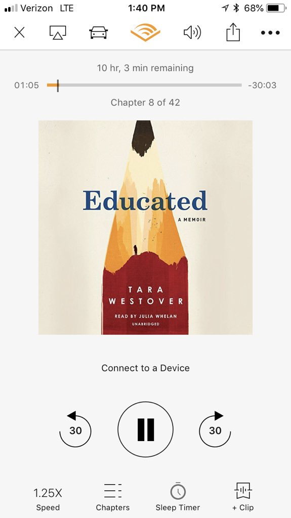 This book is an absolutely fascinating memoir, and I highly recommend it. I listened to it on a road trip through Audible, and the narration was fantastic. Westover’s story is one of personal growth, finding oneself, and even survival. Even though it’s a memoir, the story reads like a novel. You will laugh, cry, and be amazed at the Westover’s story. Read or listen to this book!